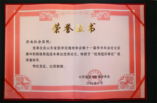 济南红绘医院荣获“优秀组织单位”奖荣誉称号